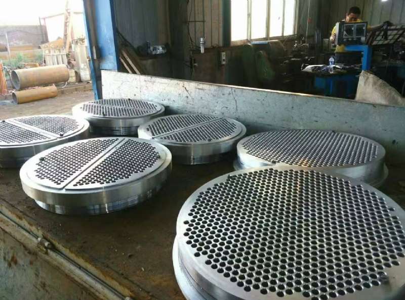 管板,就是在圓形鋼板上鑽出比管子外徑一樣略大一些(xiē)的孔,是換熱器中起到固定管子以及密封介質作用的圓(yuán)鋼。將管子穿入焊住固定,起這樣作用的一(yī)種配件。 管板加工的精度,特別是管孔間距和管徑公差、垂直度、光潔(jié)度都極大地影響著以上所列化工設備的組裝和(hé)使用性能。 在固定式管板的計算中