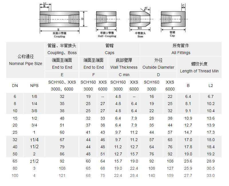 • 管箍(gū)(Coupling):管箍(gū)是用來連接兩根(gēn)管子的一段短管(guǎn)。 也叫外接頭或內(nèi)絲。管箍因為其使用(yòng)方便,廣泛應用於民用建築、工業、農業等(děng)領域。按連接形式來分有承插焊管箍和螺紋管箍(gū),承插焊管箍(gū)又分單承口管箍和雙承口管箍(gū);螺紋管箍又分單接口管箍和雙接口管箍. 按照材料分(fèn)類有: 碳鋼、不鏽鋼(gāng)、合金鋼、pvc、塑料等。連接方法有: 螺(luó)紋(wén)連接、焊接、熔接 按其製造工(gōng)藝來分可(kě)分為(wéi)鍛製和鑄造兩種。鍛(duàn)製是指用鋼錠(dìng)或圓棒加熱鍛打成型後,上車床(chuáng)加工螺紋後而成。鑄造是指將鋼錠熔化後倒入一個固定的管箍的模型後,待其冷卻後而成。